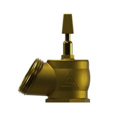 Válvula Angular 45º para Hidrante de Recalque com Entrada 2.1/2’’ rosca interna BSP 11 fios por polegada e Saída 2.1/2’’ rosca externa NBR 5 fios por polegada. Haste com engate para chave de manobra em Latão Fundido (Padrão Corpo de Bombeiros). Disco para Vedação em Latão Fundido com Borracha Vulcanizada. Classe 210 PSI. Teste Hidrostático: 400 PSI (corpo, sede e contra sede). Peso: 2,5Kg. Material: Corpo e Castelo em Latão Fundido NBR 6941. Acabamento: Usinado.