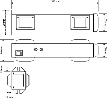 • Caixa plástica injetada com polímero ABS e lentes laterais e frontais injetadas com policarbonato (UV) (maior durabilidade)